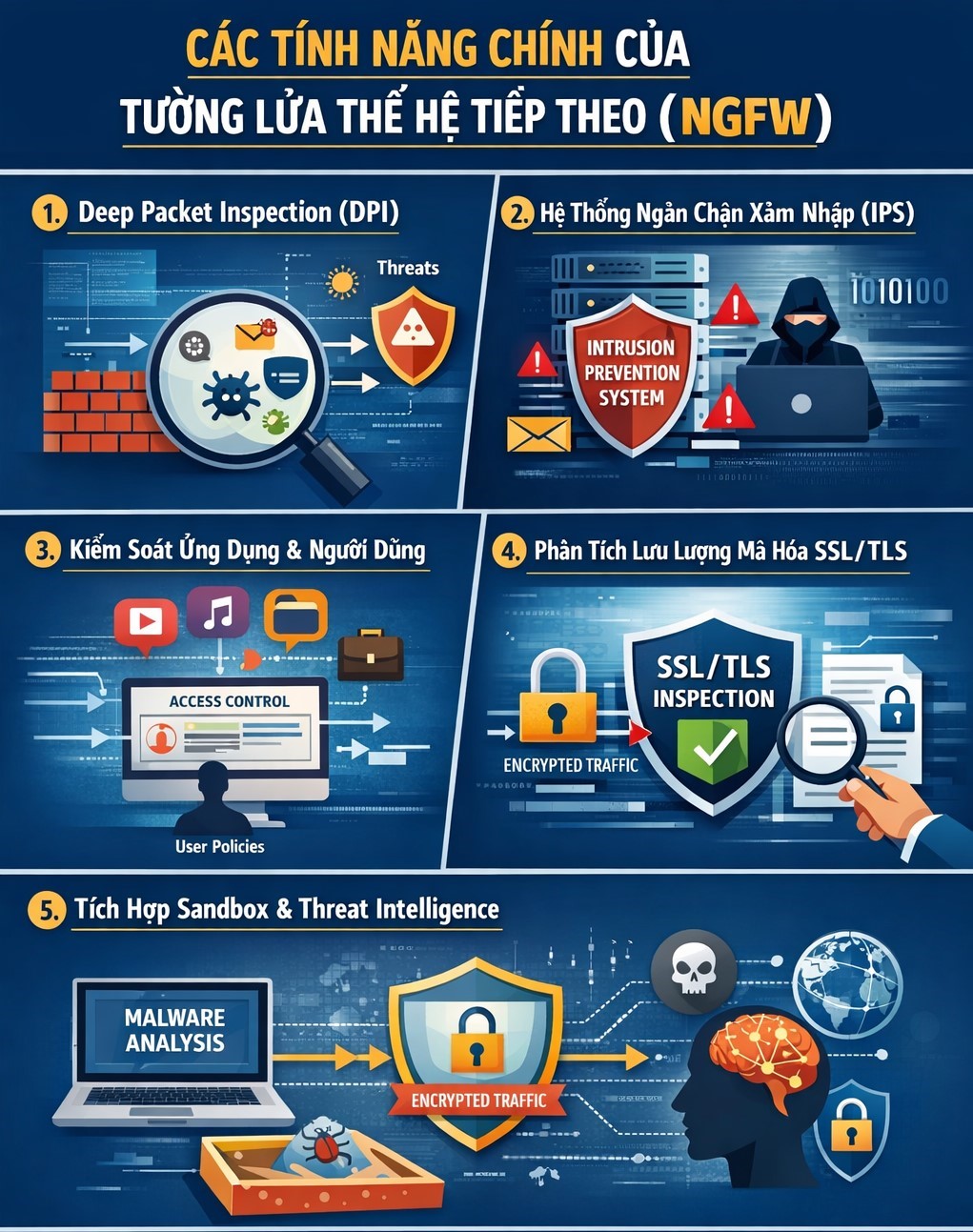 Các Tính Năng Chính của Tường Lửa Thế Hệ Tiếp Theo (NGFW) Trong Bảo Mật Mạng