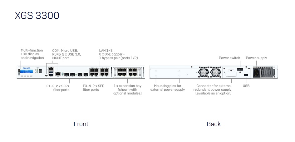 Sophos XGS 3300 là thiết bị tường lửa thế hệ mới (NGFW) hiệu năng cao, thuộc nhóm giải pháp Enterprise Edge của Sophos. Được thiết kế để bảo vệ các tổ chức lớn, có số lượng người dùng và thiết bị kết nối lớn, XGS 3300 mang đến sự kết hợp hoàn hảo giữa thông lượng khổng lồ, khả năng kiểm tra SSL/TLS cực nhanh và độ tin cậy doanh nghiệp (High Availability).